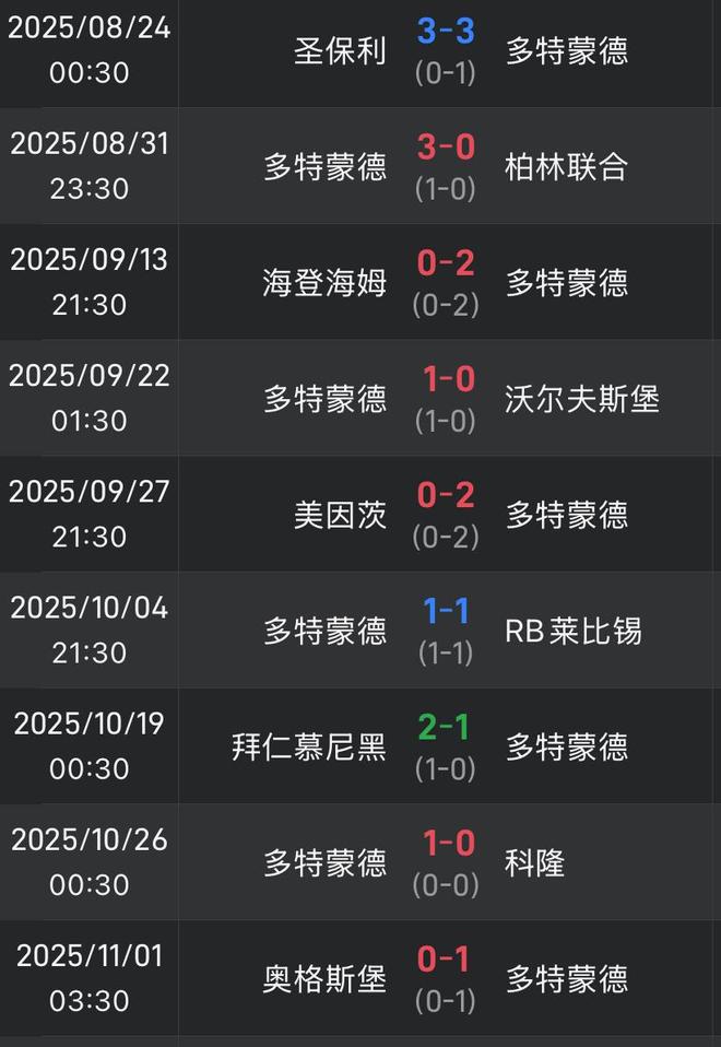 2025年11月01日 德甲2连胜!多特1-0奥格斯堡先赛升第2 吉拉西制胜+打破5场进球荒